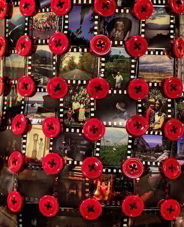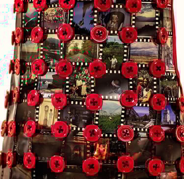 Detail: The slides, sewn together with buttons, typically hold shared memories. I see similar images time and time again: holidays, babies, vacations, family gatherings. It appears that we all value the same things. This confirms, for me, our shared humanity.
