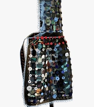 Front and neck have fringe made from spiral cut floppy disks.